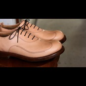 履き口の踵に向かう曲線や、つま先の丸みを帯びたウイングチップ。