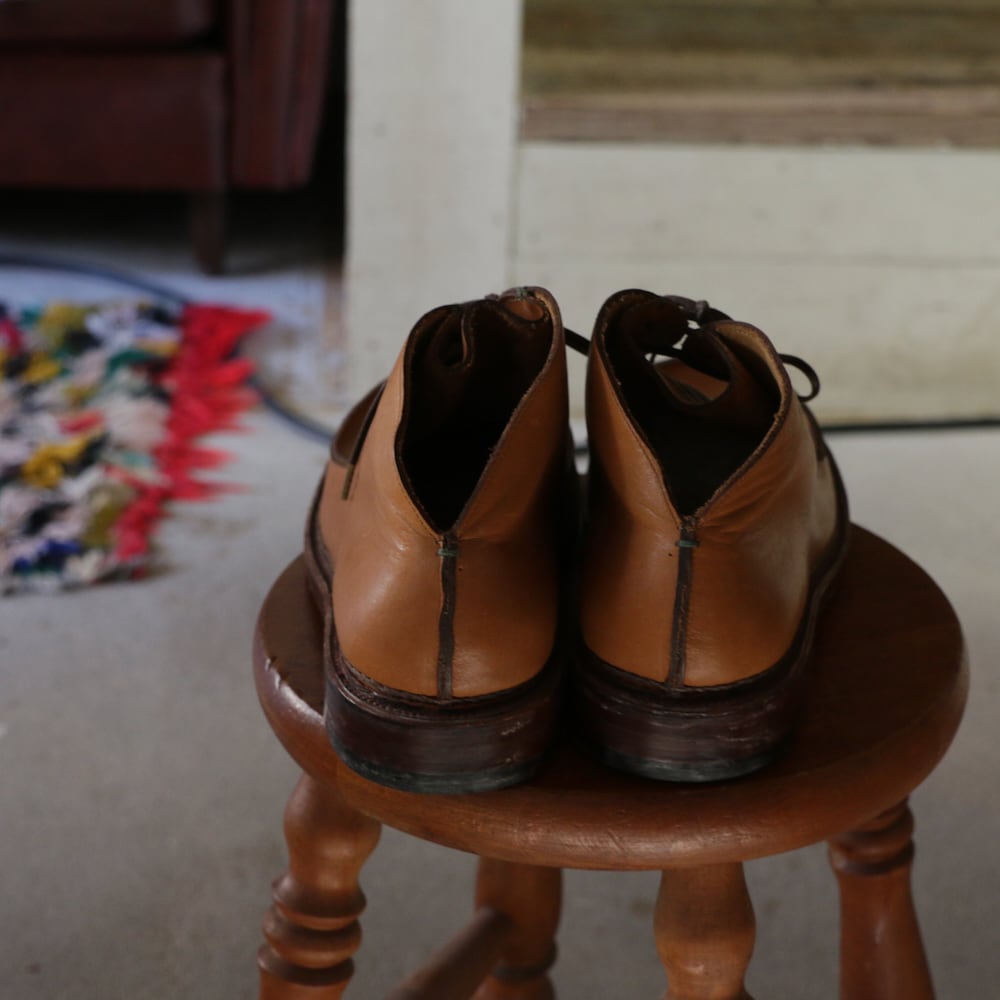 ソールの側面の装飾的なステッチワークが特徴的です。ソールに見えるのは3本の太いステッチ。アッパーとミッドソールにチェーンステッチをかけ、その後アウトソール上段とアッパーを縫い付けます(ミッドステッチ)。最後にアウトソール全体を縫い付ければ完成。同ブランドの中では、最も装飾的であり、堅牢な佇まいとなるソール形状を生み出す製法となり、またチェーンステッチ、ミッドステッチはすべて手作業で、手間と技術が必要です。