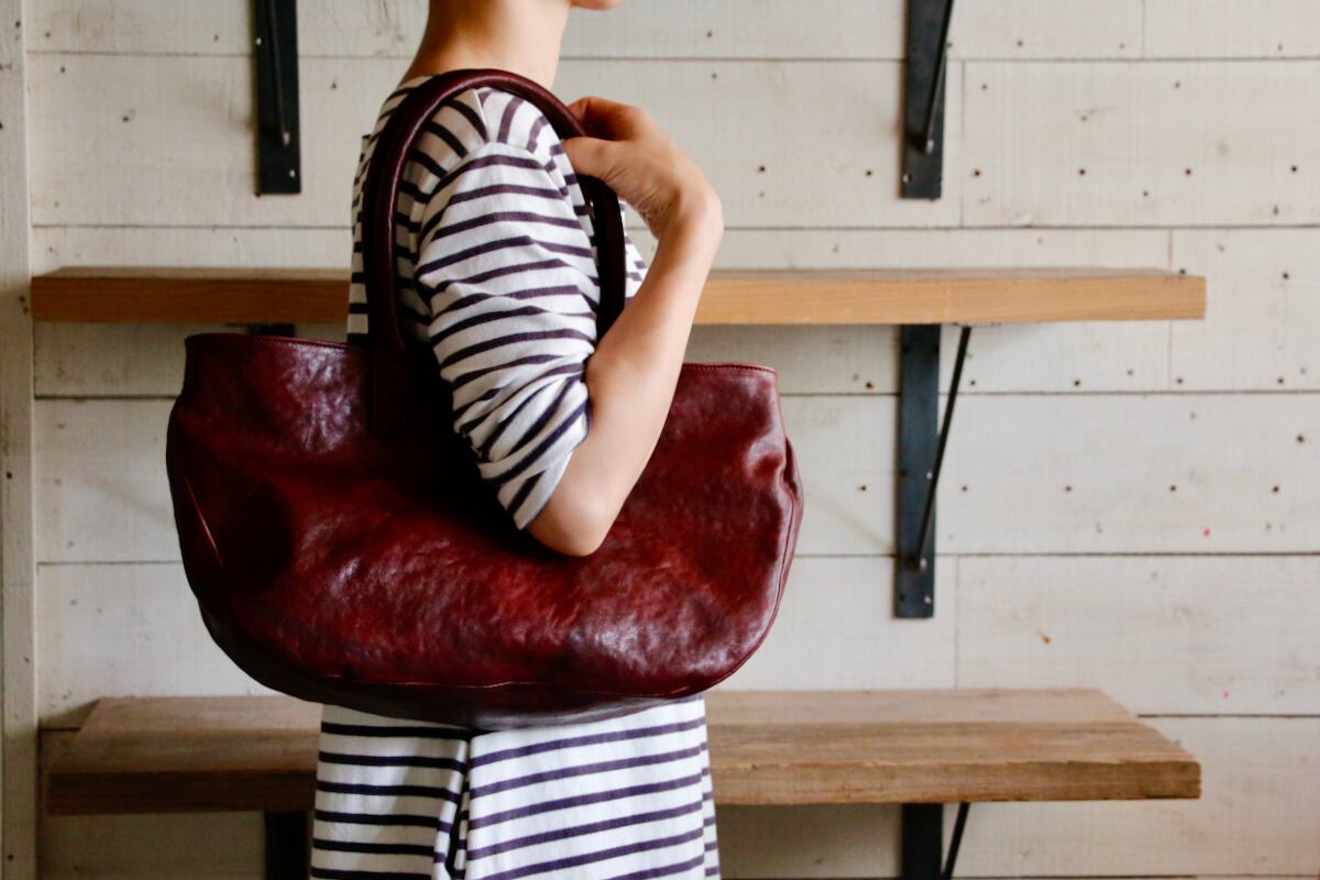 kokochi sun3 / 残革バッグ・くるみボタン・ボルドー